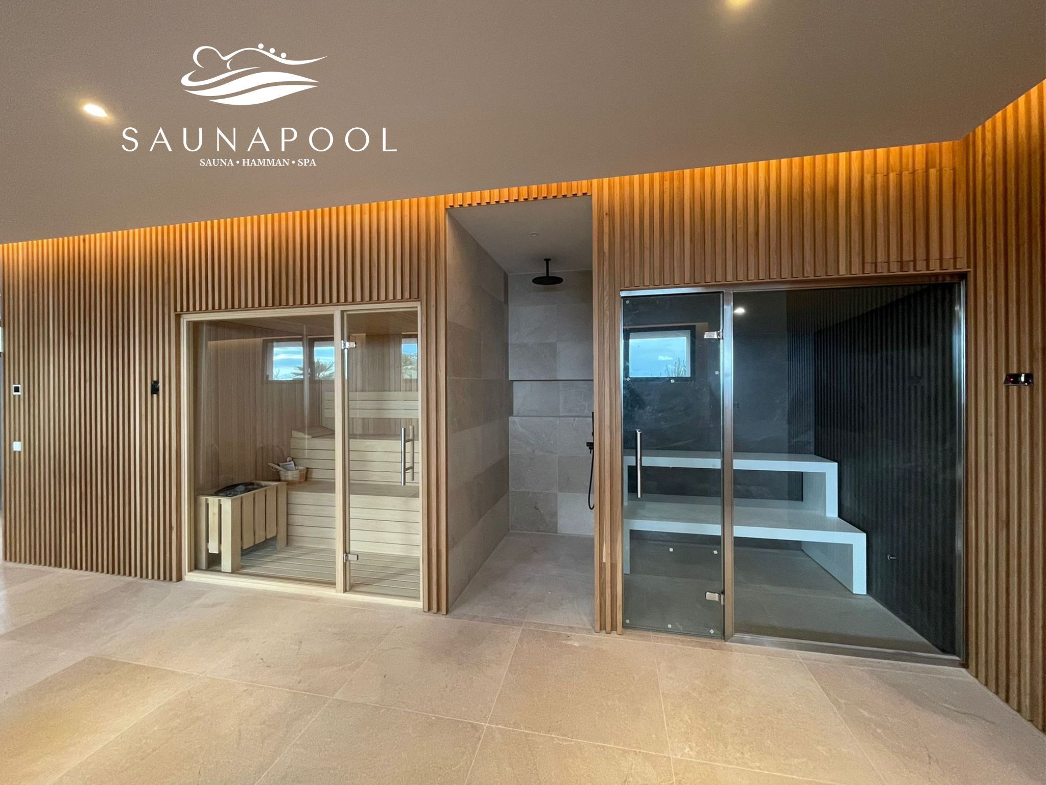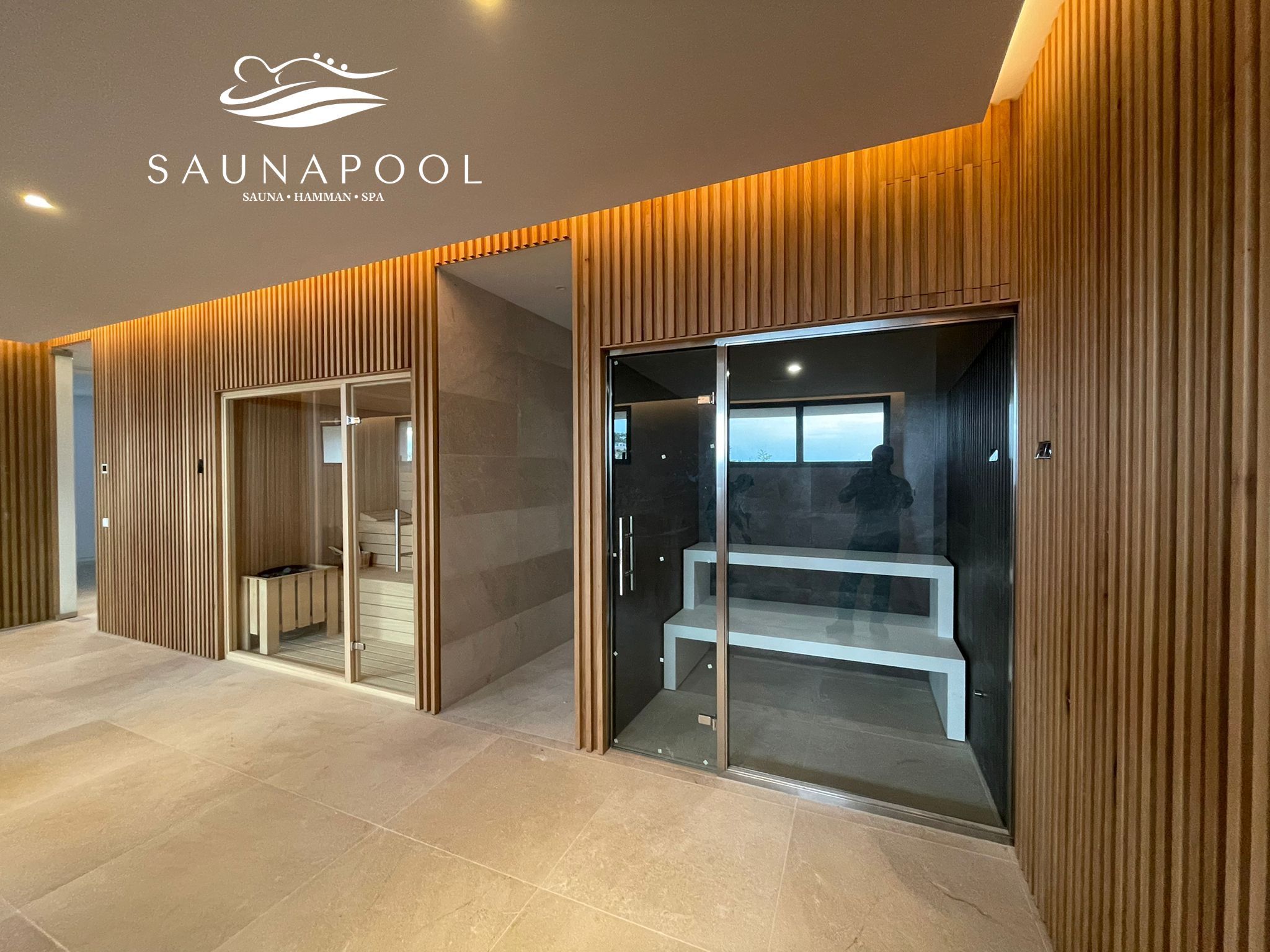 Sauna en madera de Abachi y Baño turco, uno de nuestros últimos trabajos para una casa particular en las Islas Baleares realizado para http://www.cocoingenieros.com/